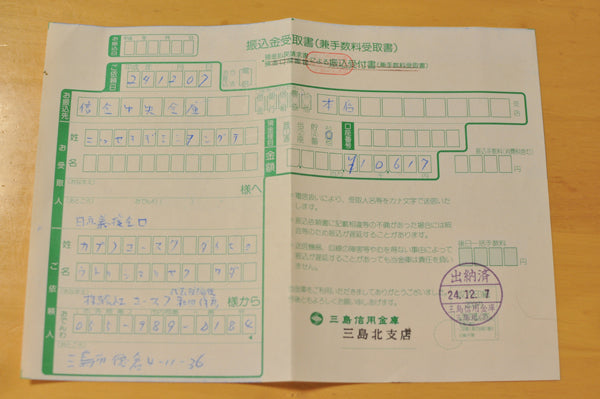 義援金の振込書、振込料の無料措置も継続中でした
